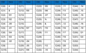 The table below redefines the old C(X) references to their new substitutions. Note that more than a few references are now obsolete, and no substitution is listed. Also, the old output commands like SYSC(0) have been replaced by special one-character commands like the "#" command. For more information on the ML commands and ML variables, consult the programming section.