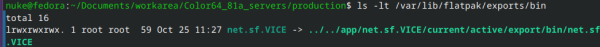 - On Fedora that utilized flatpak, this completely changed. I used the Vice installation in Software manager (again, uses Flatpak). When installed in this manner, Vice is normally launched with /bin/flatpack run --branch=stable --arch=x86_64 --command=x64sc net.sf.VICE but it does not accept the command-line arguments we need for the script. Because of this, my recommendation is to use the flatpak linked file created at /var/lib/flatpak/exports/bin location - which is generated when you perform the install of Vice. See my picture below: