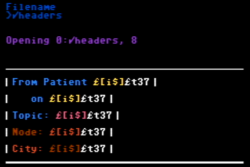 In each of the header lines, you may designate where the actual variable information (such as the subject of the message) will be printed with the following Variable MCI: £[i$]. This prints the contents of i$, which will hold the variable information for each line as it is printed.